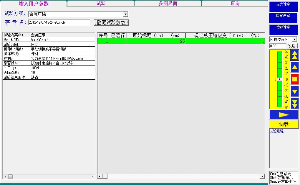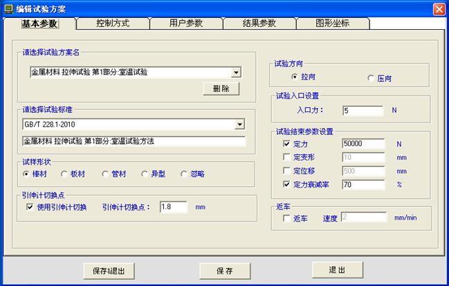 試驗方案:通過編輯運行方案,可實現力控、位移控、變形控等多種控制方式組合運行,從而滿足任何靜態試驗運行需要。可設置試驗參數,如運行參數設置、 試樣參數設置、運行條件設置、試驗結果項目管理。可進行試驗運行管理,如啟動試驗運行、試驗運行過程管理、試驗狀態管理及示值顯示管理。