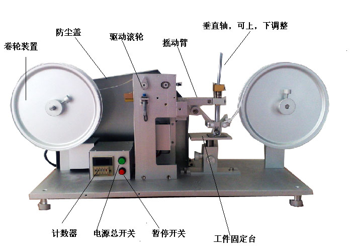 以固定直徑的滾輪及定速馬達,配以特定的計數器。以產品所能承受的耐磨次數,來確定產品的耐磨性能。廣泛用于手機表面涂裝的性能測試。