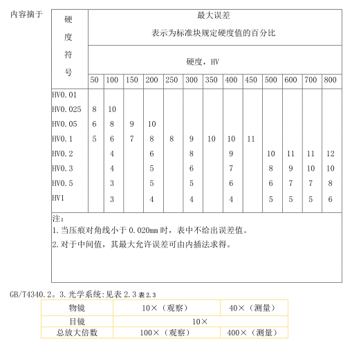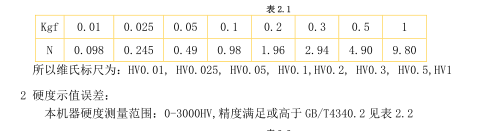 3.表中值是以0.001mm或壓痕對角線平均值的2%為最大誤差給出的,以較大著為準。